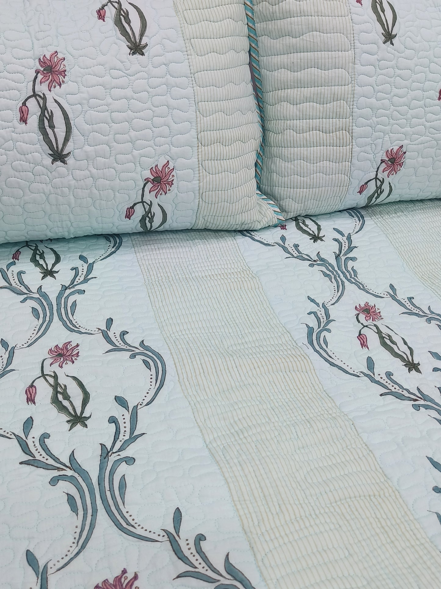 Quantity - 1 Quilted Bedcover + 2 Quilted Pillow Covers